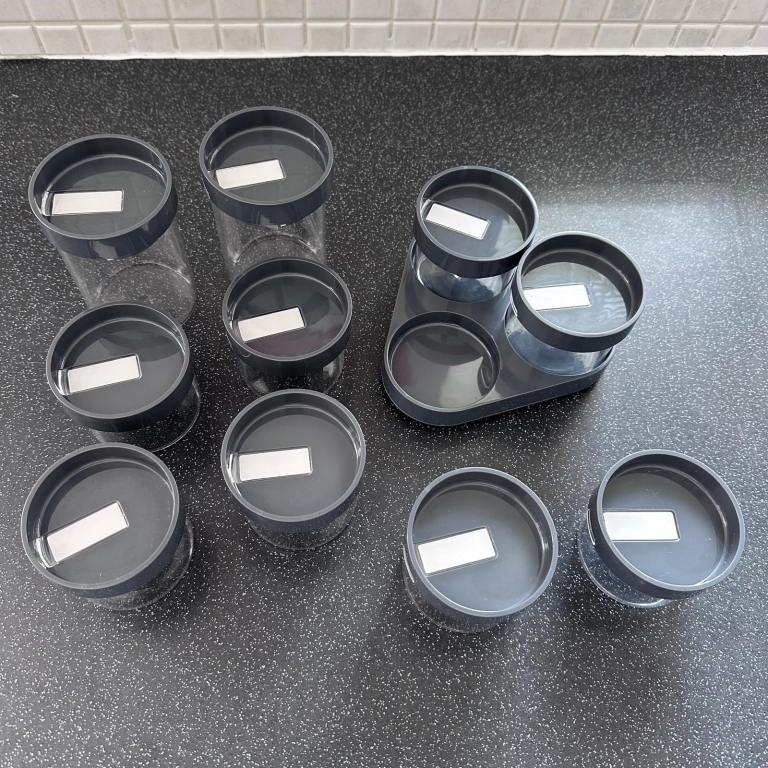 Grey Joseph & Joseph spice carousel with combination of small and larger jars.
