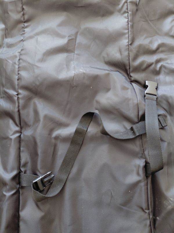 Will easily hold two pairs of skis, poles and helmets. Outside has a small minor tear,(repaired) inside is perfect.