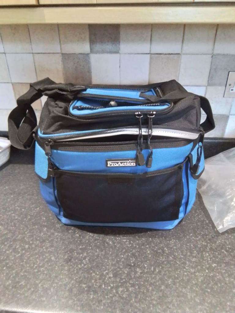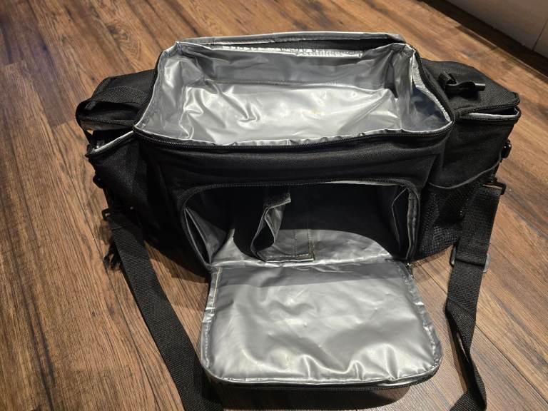 Good condition meal prep bag, has multiple pockets and internal sleeves for cooling packs, no damage.