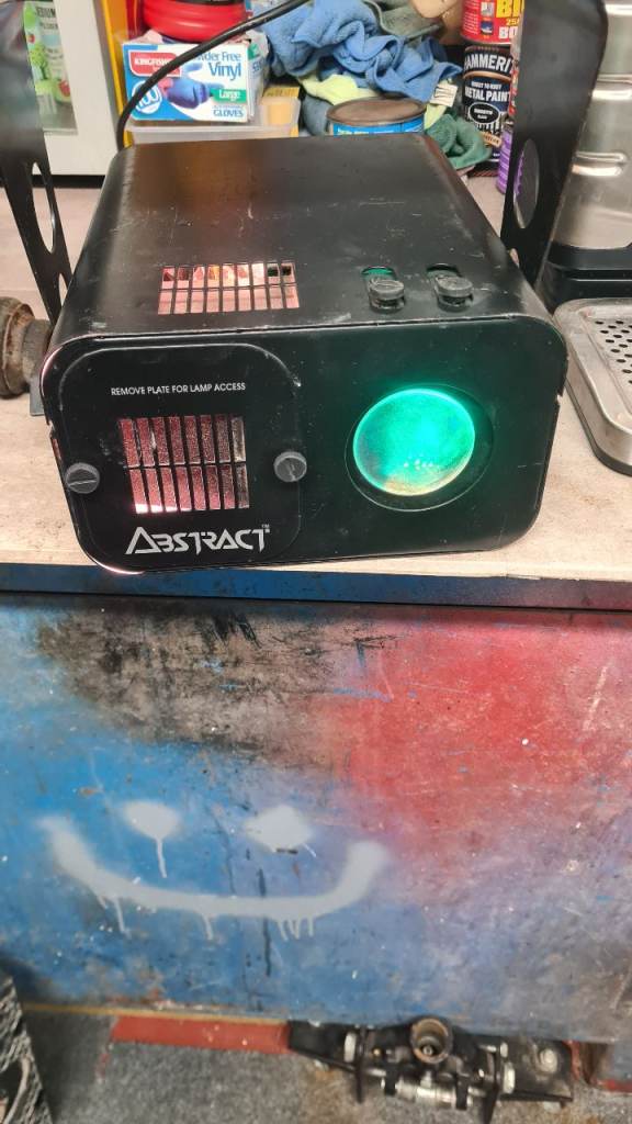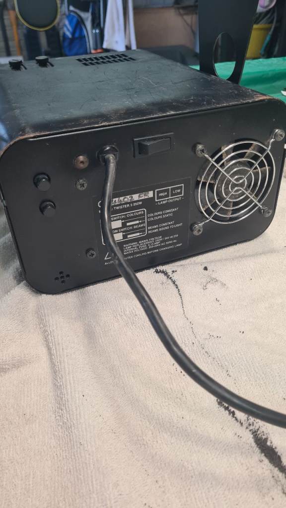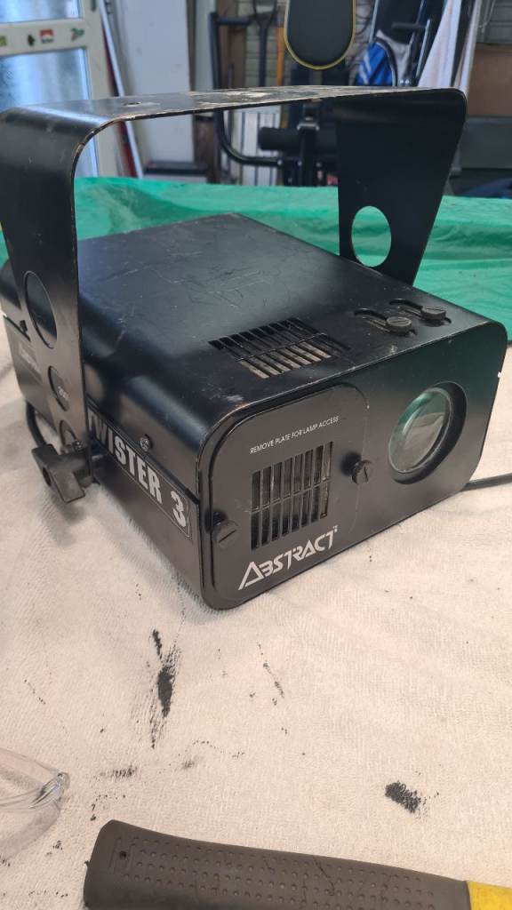 Abstract twister 3 disco light in full working order,has bracket to fit either a stand or ceiling. Different speed settings and focus adjustment. Great foe man cave or bar.