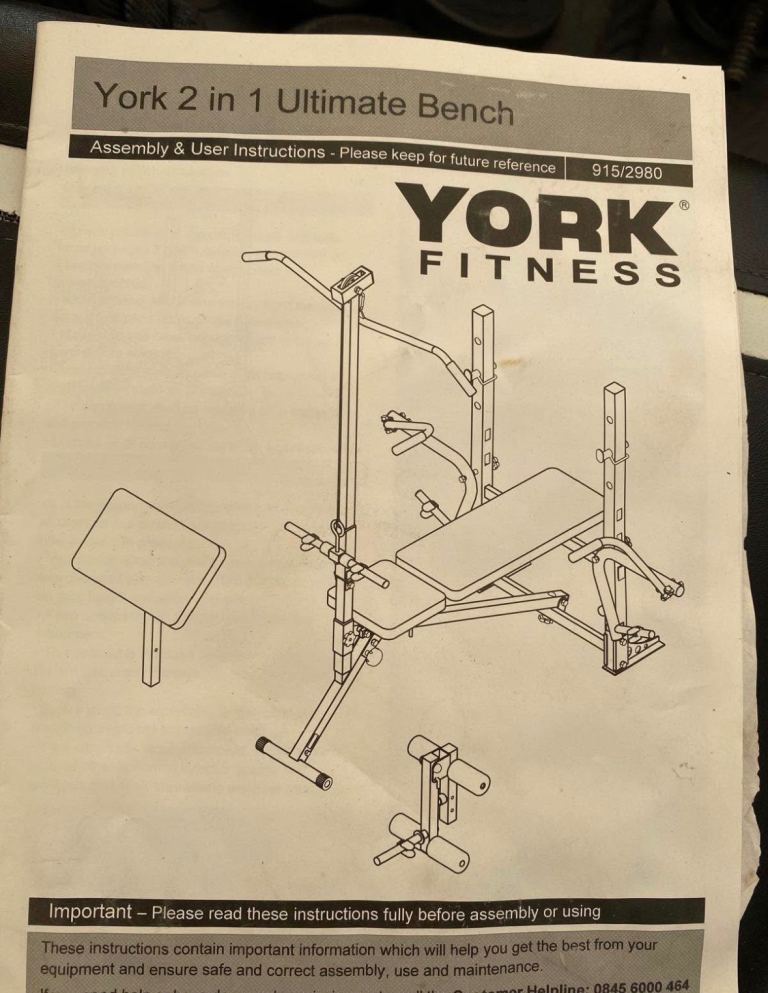 • Thick York Fitness padded bench for comfort & support