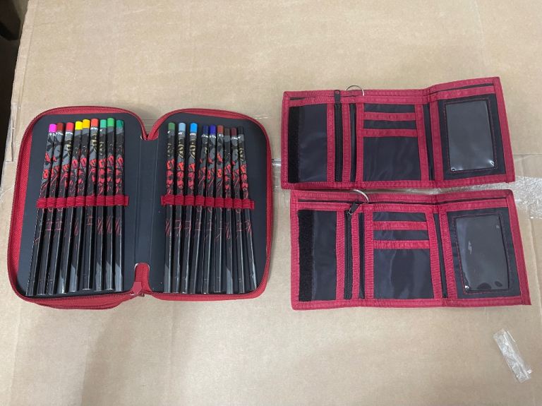 DISNEY STORE PIRATES OF THE CARIBBEAN STATIONARY PENCIL CASE / COLOURING SET AND 2 WALLETS PIRATES RULE JACK SPARROW like new condition. From a smoke and pet free home.