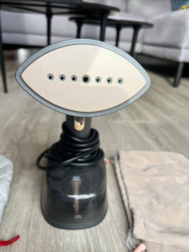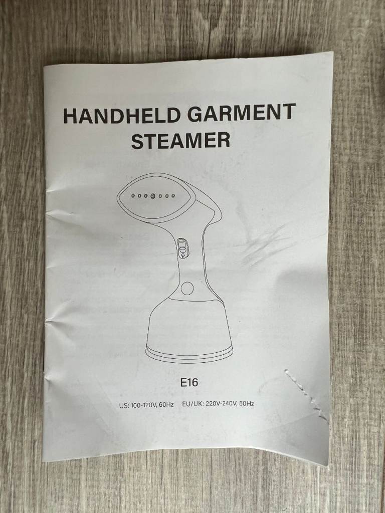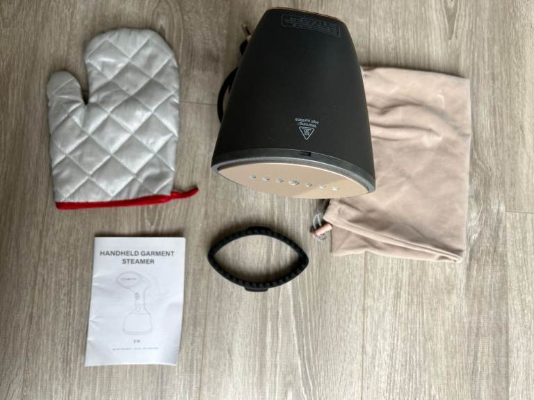 Handheld garment steamer with water tank and power cable (UK plug). Suitable for steaming clothes and fabrics. Includes accessories and instruction manual (as shown). Fully working, in great condition. Recently bought. Selling because I’m moving abroad.
