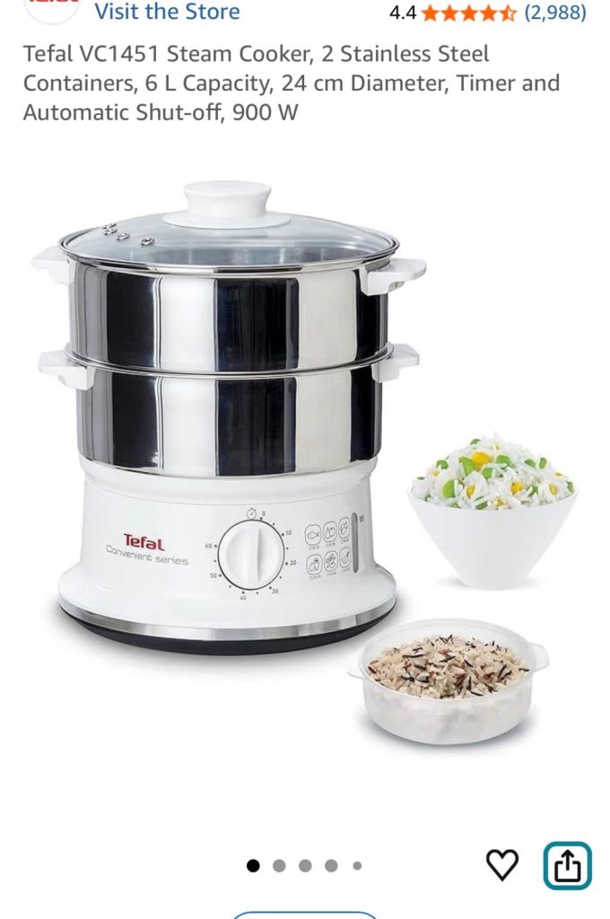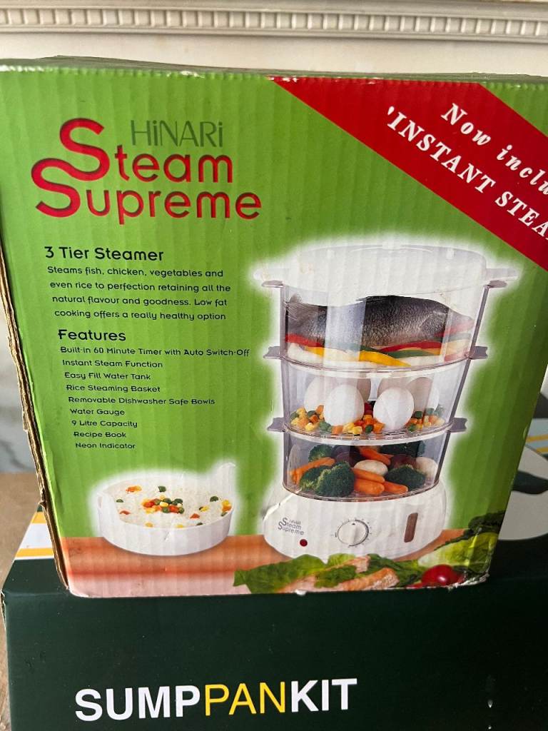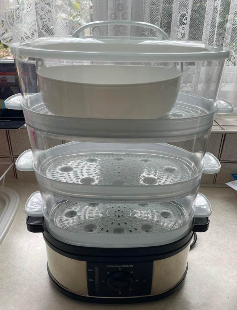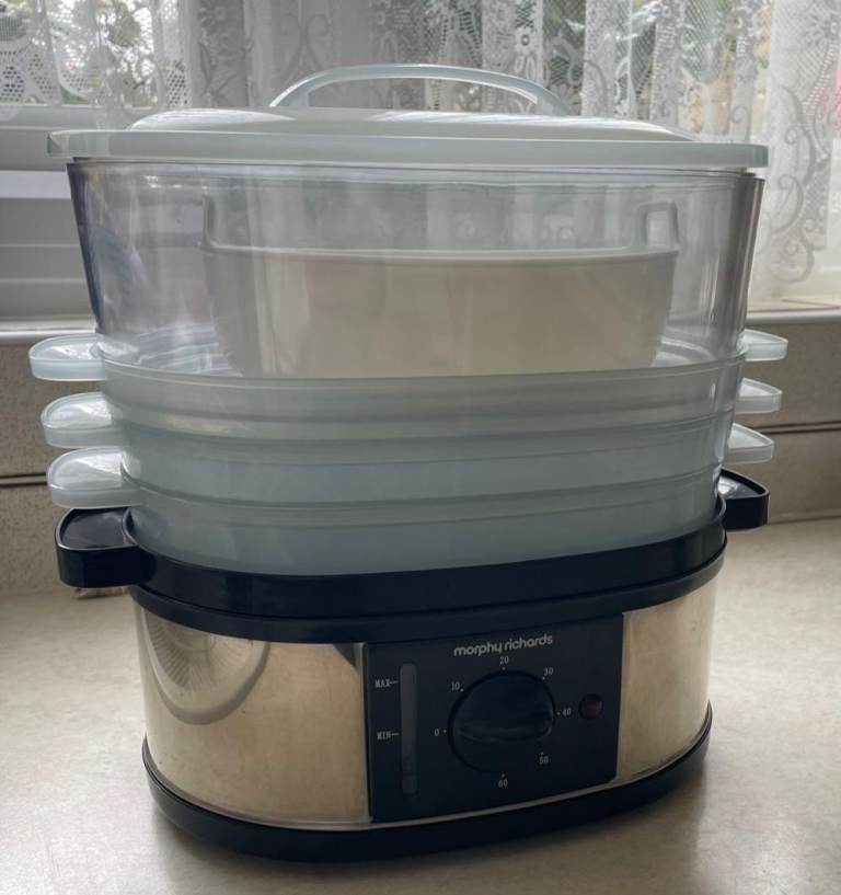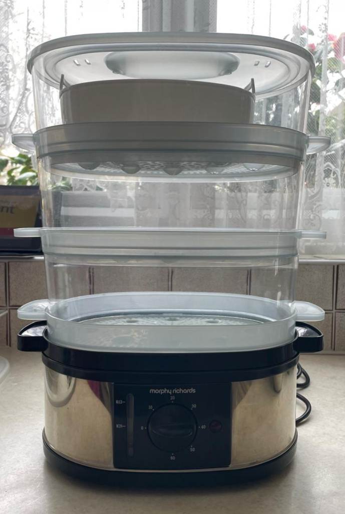 Nine Litre Family Size: Large capacity steamer feeds four to five people simultaneously