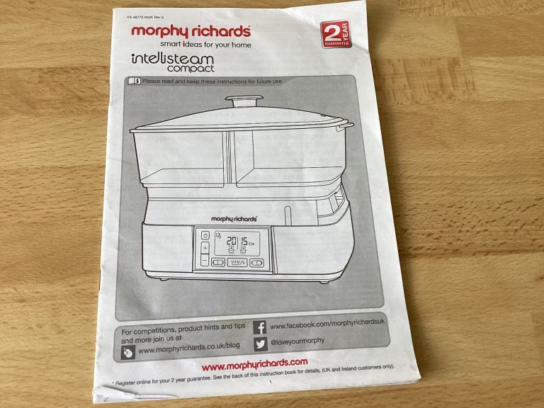 Morphy Richards Compact Intellisteam Tier Food Steamer, large 6L capacity. Compact design. Excellent condition, hardly used.