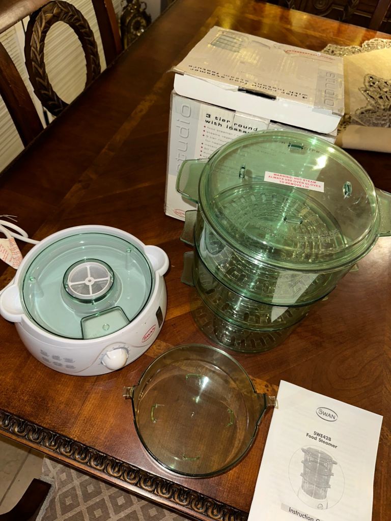 NEW - Vtg SWAN Food Steamer 3 Tier Electric Vegetable Steamer with Rice Bowl