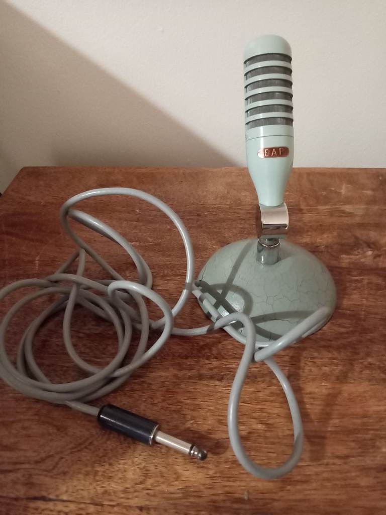 Here’s a 1950’s British ribbon microphone that was rebranded by “EAP”. “EAP” stood for Elizabethan which was a tape recording company in the UK through the 50’s and 60’s. This microphone is a Lustraphone VR64 ribbon microphone. untested as i have no way to test it. 120 ono collection only