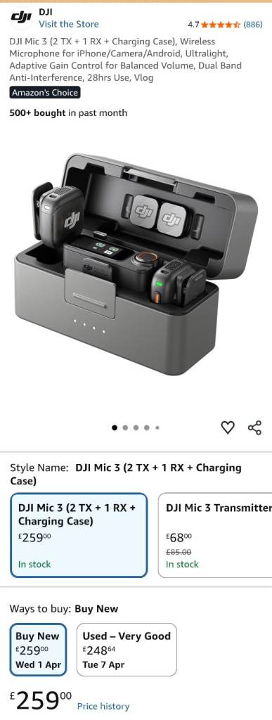 New, sealed, DJI MIC3 wireless microphone set, ideal for vloggers, interviews.