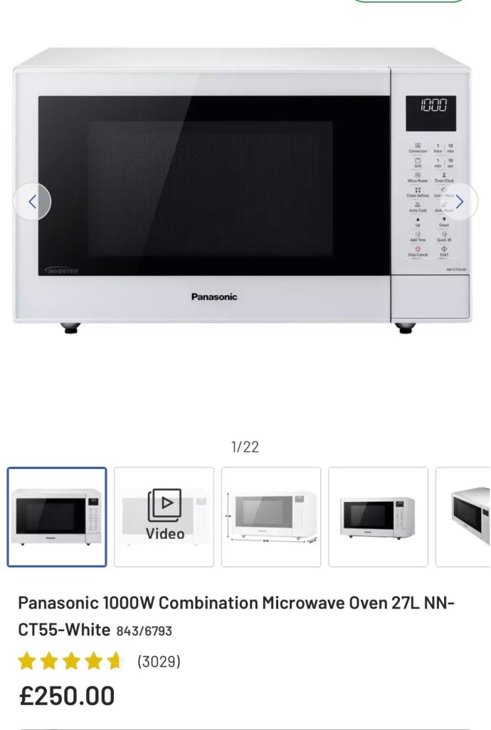 Panasonic 1000W Combination Microwave Oven 27L NN-CT55-White