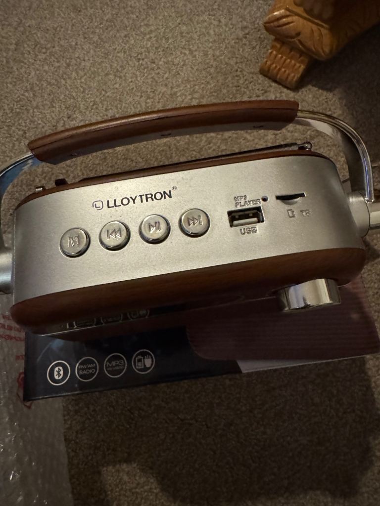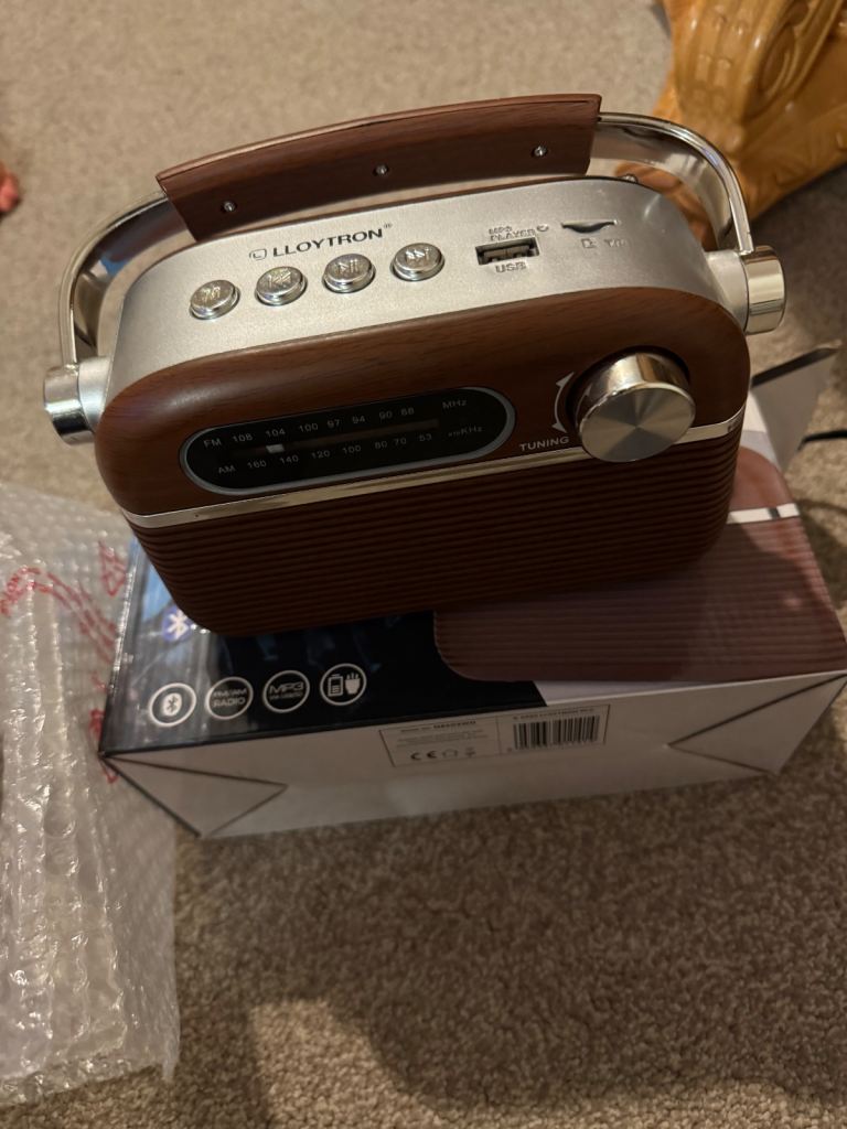 Hi welcoming you all to this great Lloytron Vintage Style Rechargeable Bluetooth AM/FM Radio with MP3 playback new with box thanks