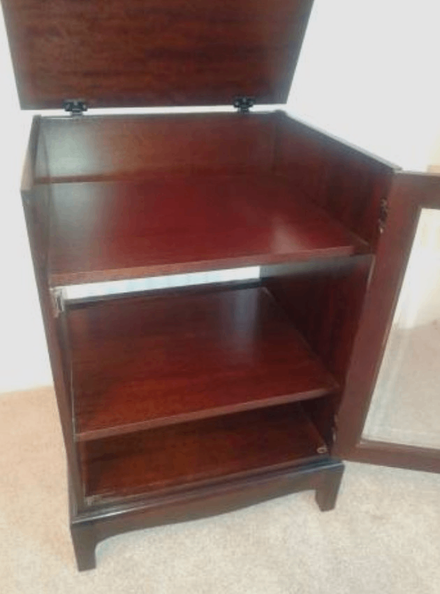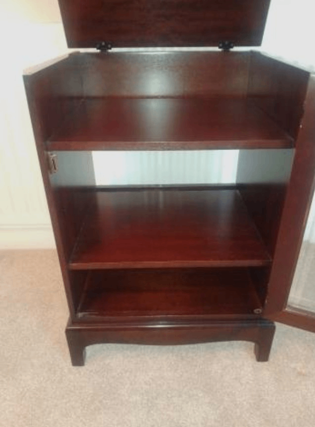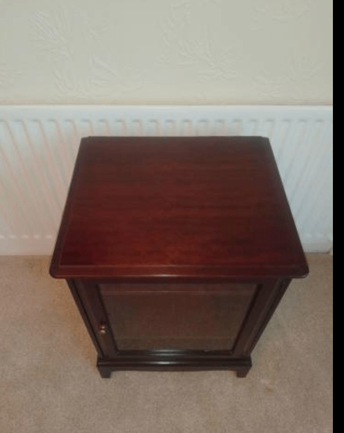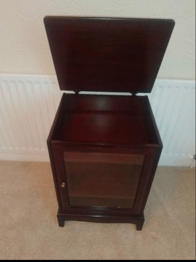 Stag hi fi cabinet. Solid wood. Excellent condition - as new. Perfect for a turntable, etc. Mahogany finish. Low price for quick sale - sorry but the price will not be reduced. First to see will buy.