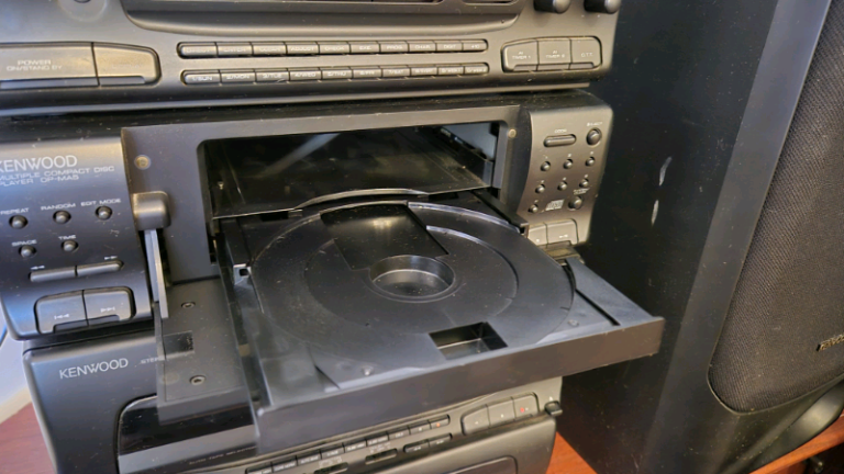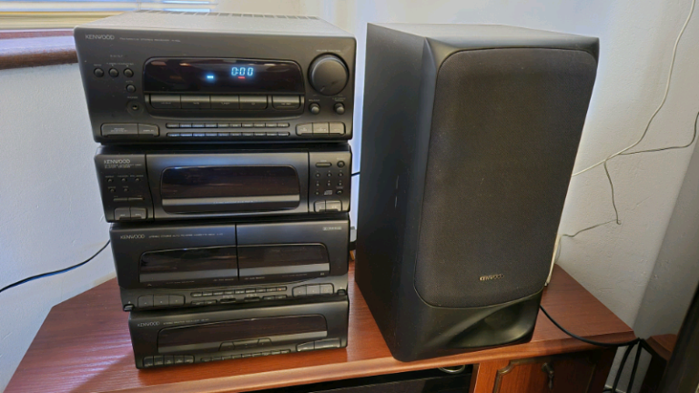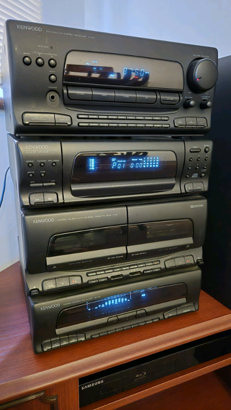 Kenwood stereo cassette receiver, compact disc player, and 2 speakers