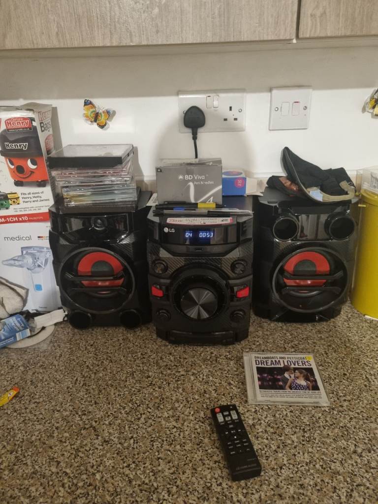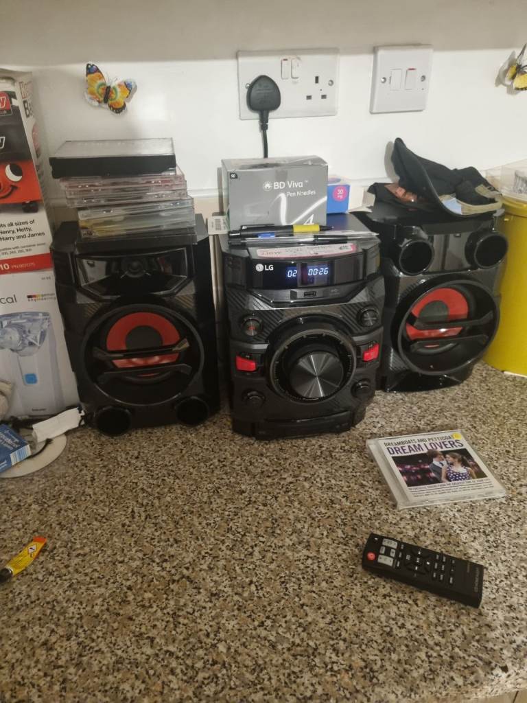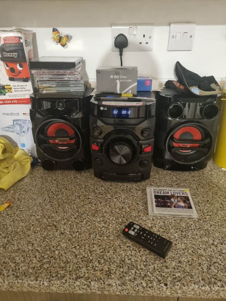 LG HIFI SYSTEM WITH BLUETOOTH CD PLAYER AUX RADIO USB LOADS MORE. GOOD QUALITY SOUND WITH LOADS OF BASS. 100 POUNDS FIXED PRICE CAN DELIVER LOCAL FUEL MONEY. 230 .WATTS SOUNDS REALLY GOOD. CAN DELIVER LOCAL FUEL MONEY