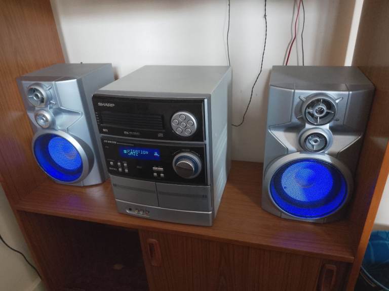 For sale this Sharp Hi-Fi SW-330 mini component system, it has a 5cd player, twin tape decks and a sub woofer bass unit.