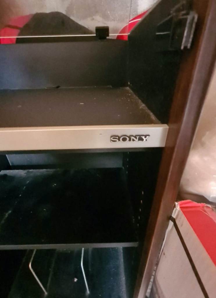 1 x vintage Sony hifi cabinet. Glass door to front and lid. Made to house hifi separates. Space for vinyl records under.