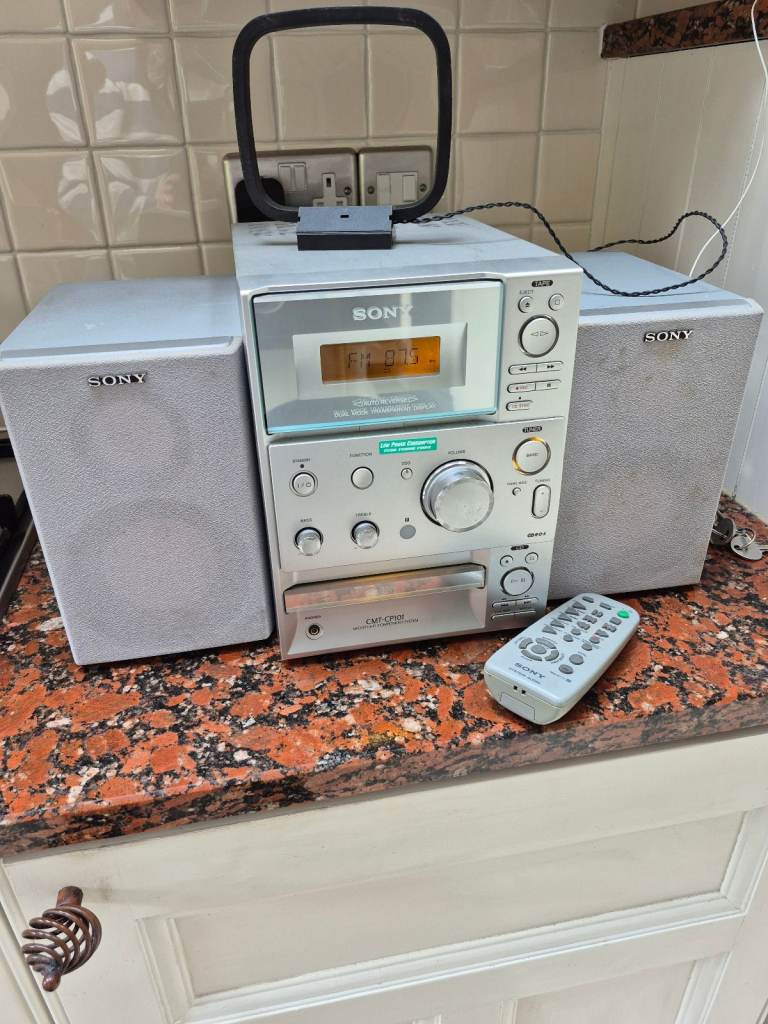 Selling a working Sony CMT-CP11 compact stereo system, delivering Sony quality sound from its built-in CD player, cassette player and tuner. Ideal for music lovers who appreciate the classic performance of a trusted Sony setup.