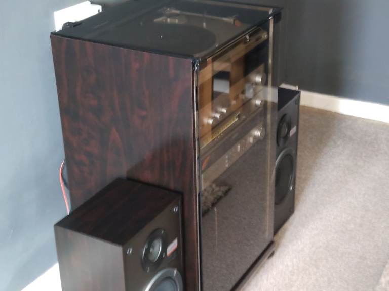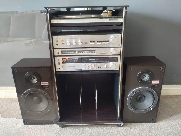 Classic 1982 technics hifi in original cabinet excellent fully working condition SU-Z25 amp, RS-M216 tape deck, ST-Z25L tuner, SL-B21 turntable, and SB-3110 speakers