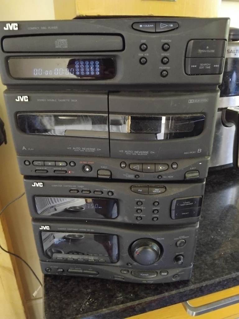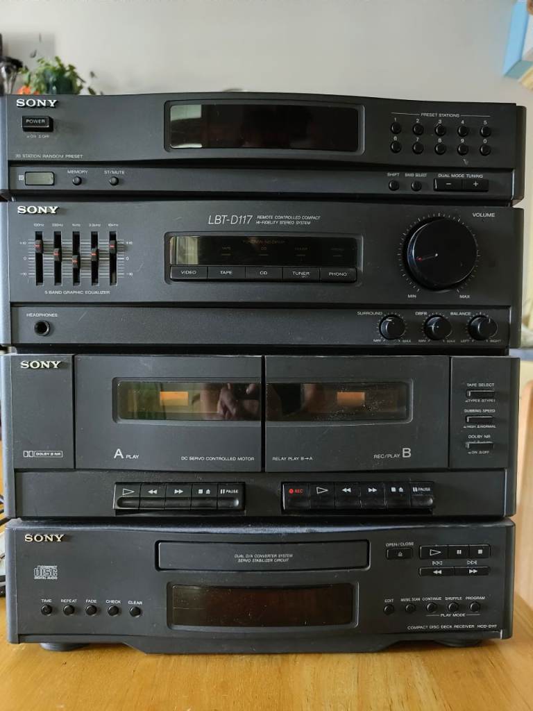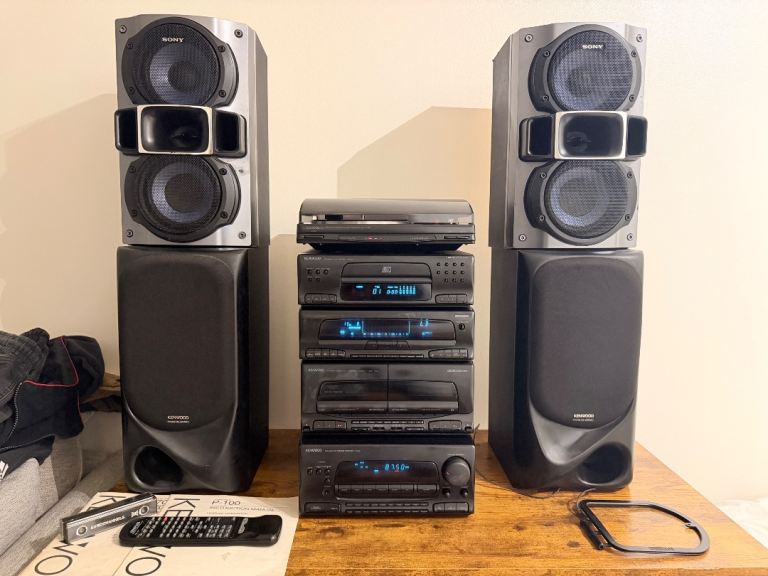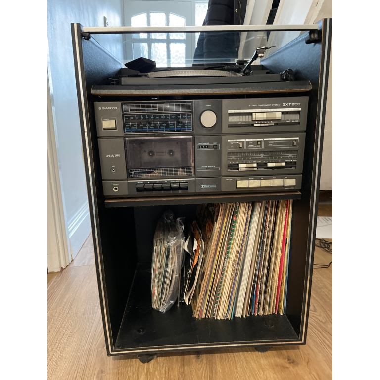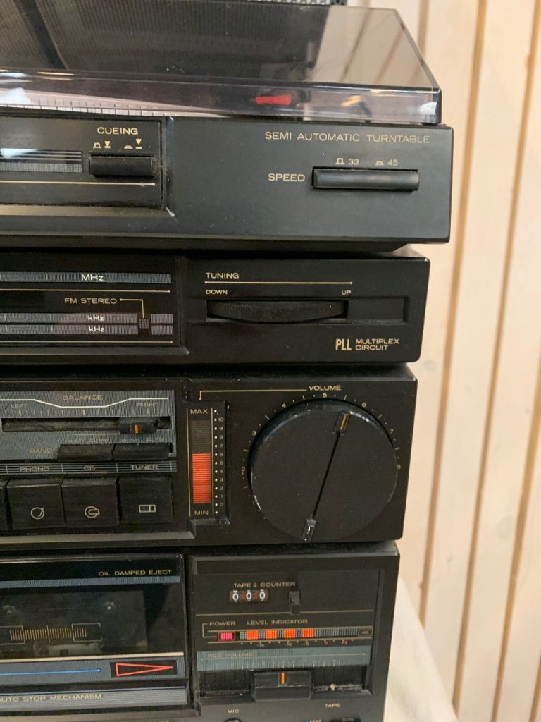 This is a complete, matching stack ideal for vinyl and cassette enthusiasts or as a retro display system.