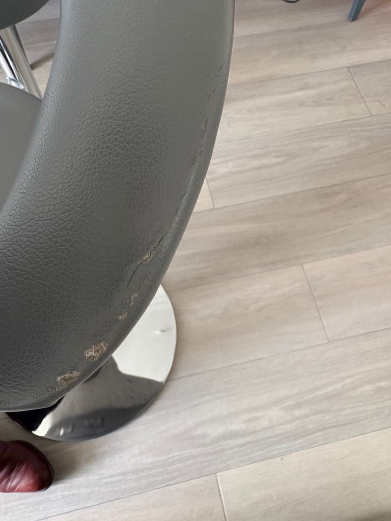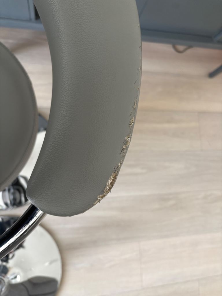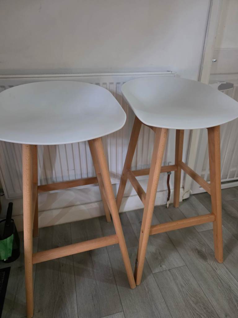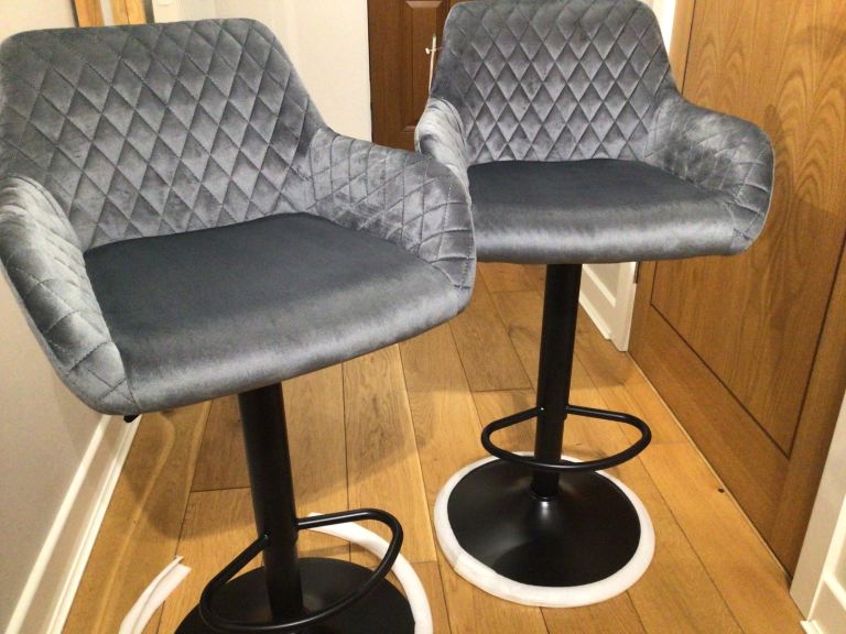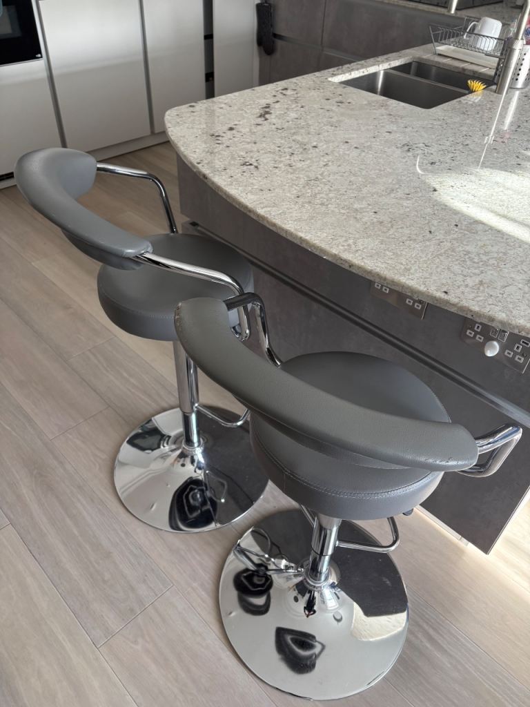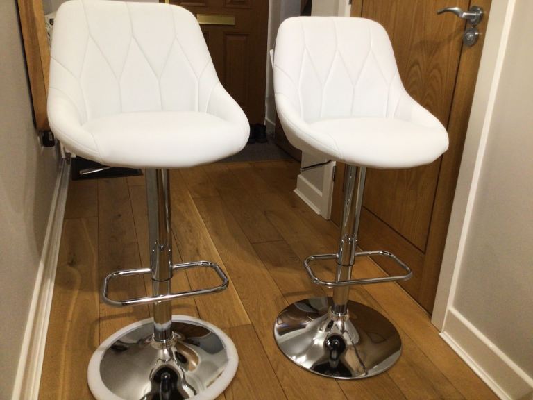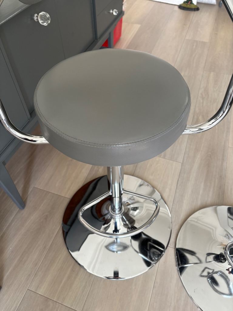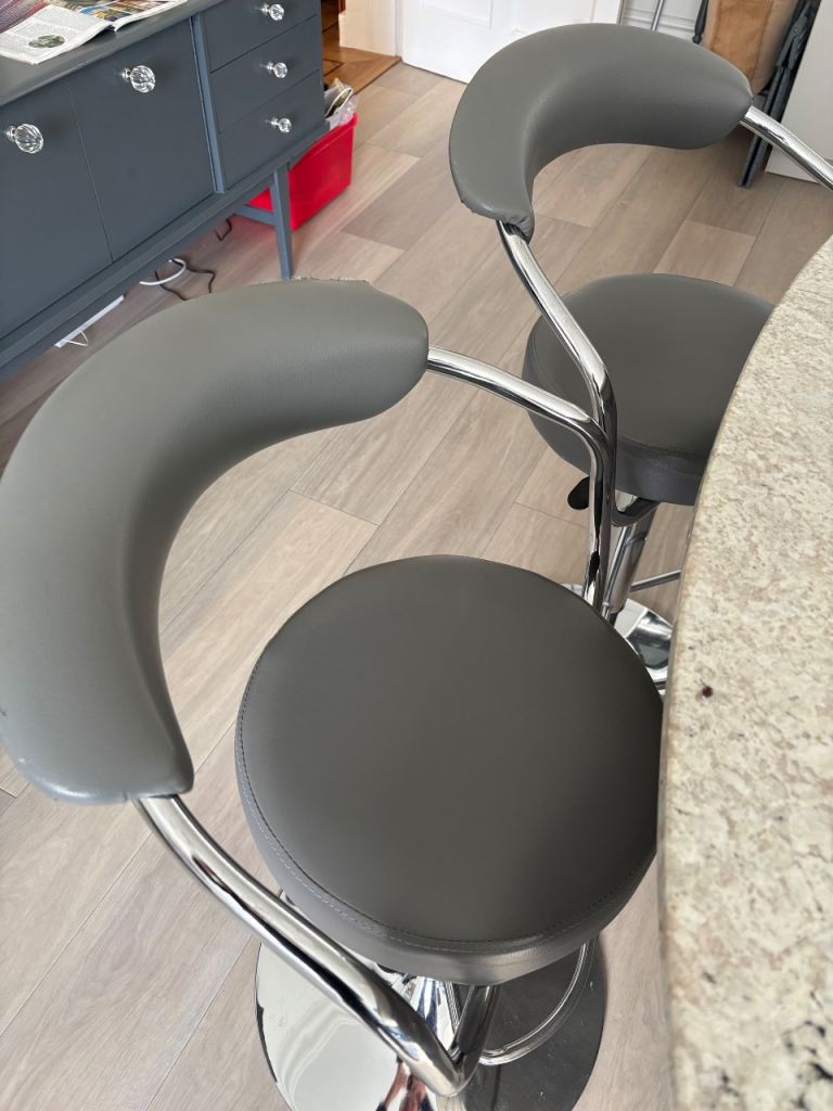 2 kitchen bar stools in good working order. Gas lift mechanism to raise and lower the seat height. Sturdy and elegant. Left hand edge of both have suffered some scuff damage - see photos. £10 each.
