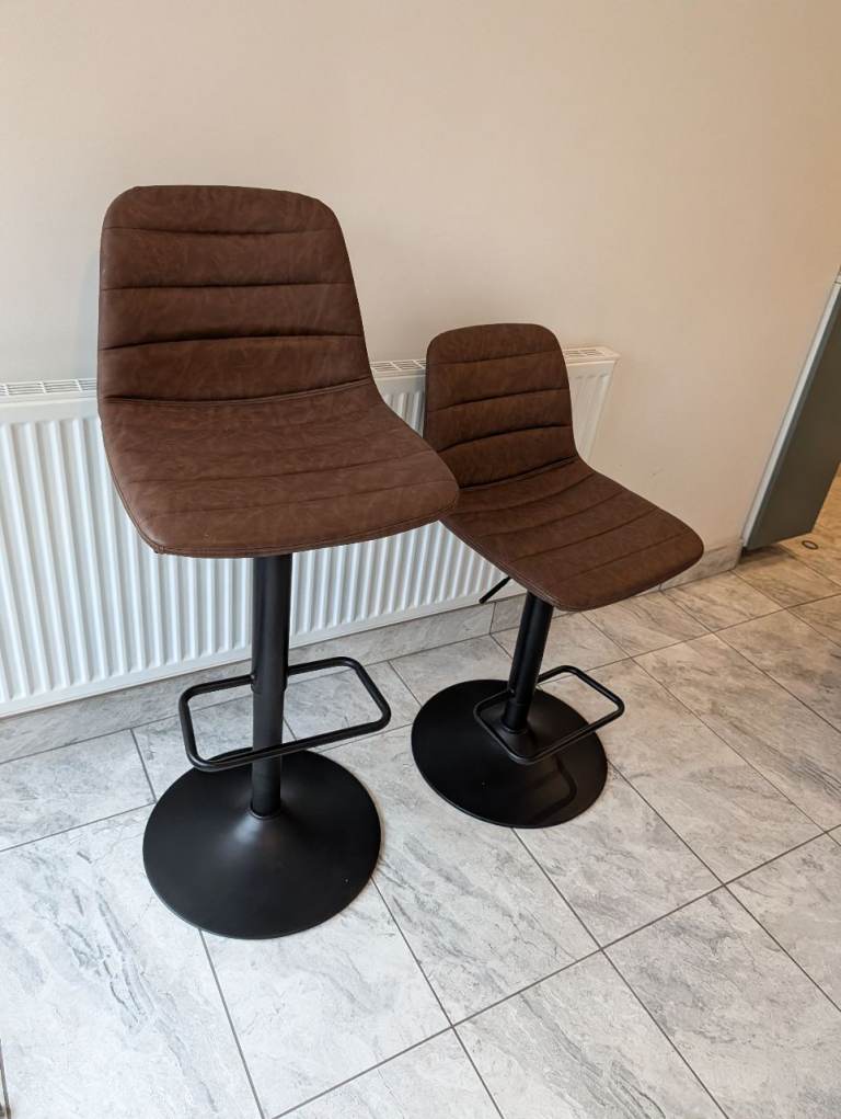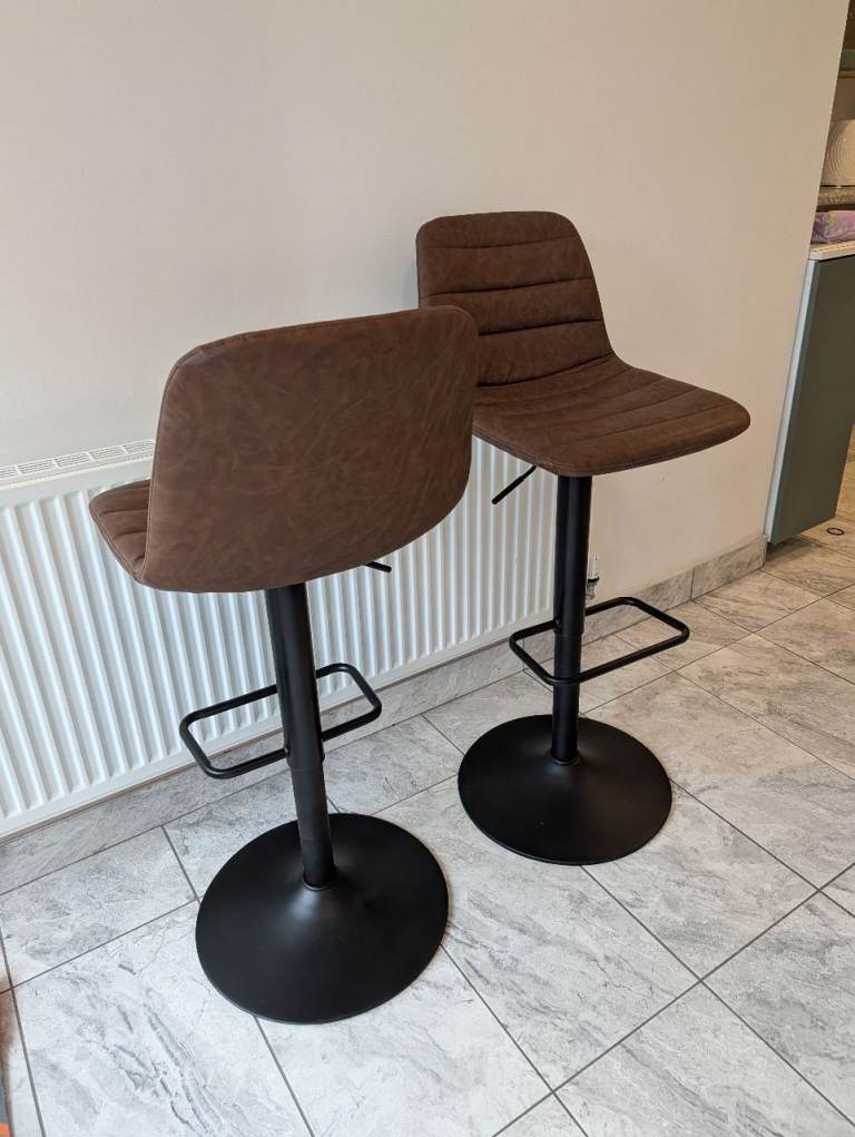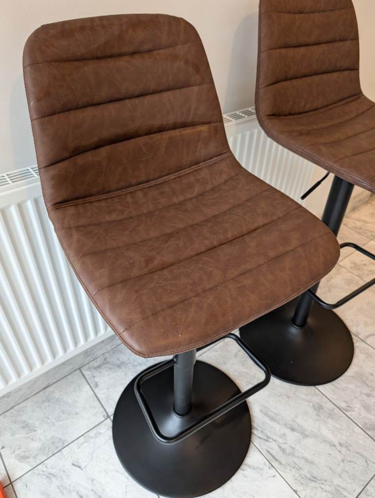 2 Brown PU leather height adjustable barstools. Excellent condition, only 3 or 4 months old, originally bought from Dunelm for £90 but house move forces sale. Buyer to collect from Chipping Sodbury please.