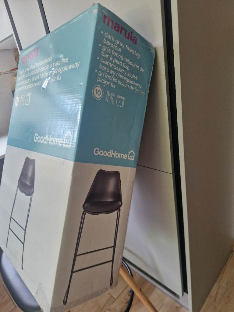 Brand new GoodHome Marula dark grey bar stools. Brought some B & Q (£59 each) a few months ago. Only selling as had to change kitchen & does not match new kitchen!
