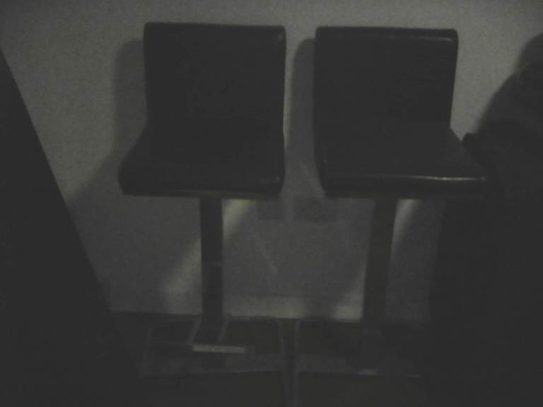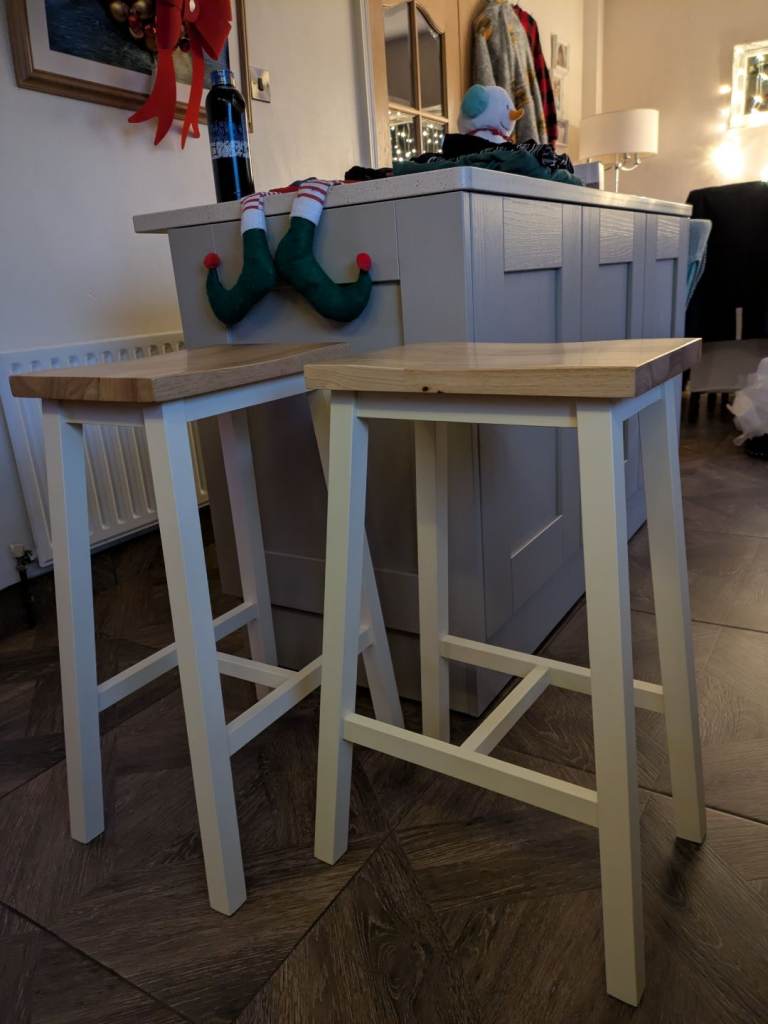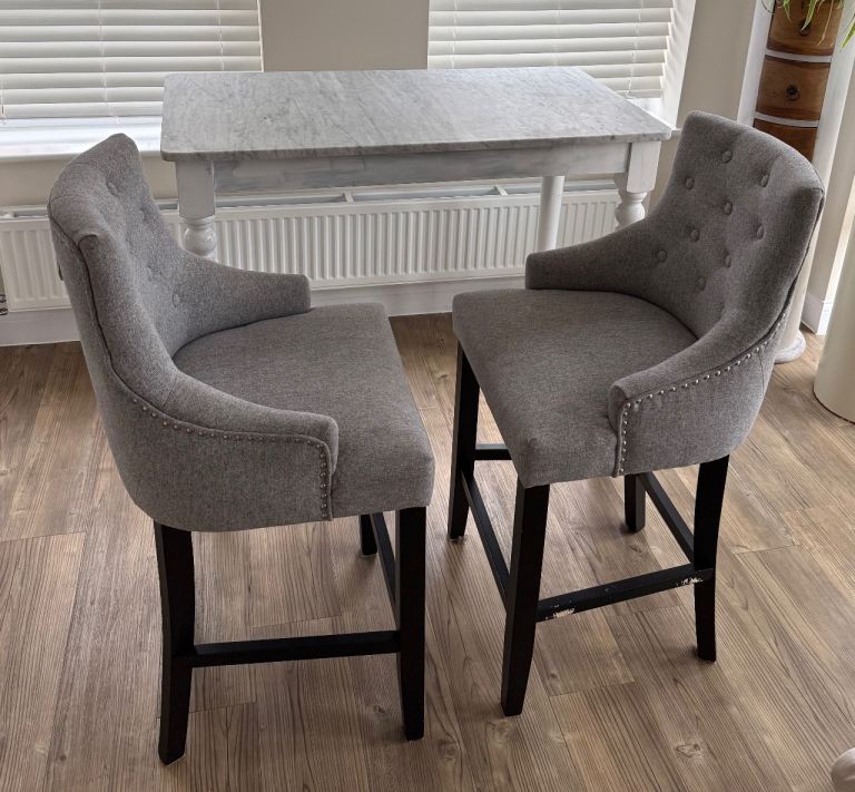 Wooden details black stools with high back. Seat height is approx 73cm.