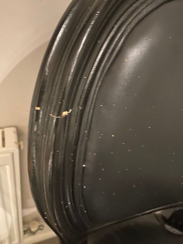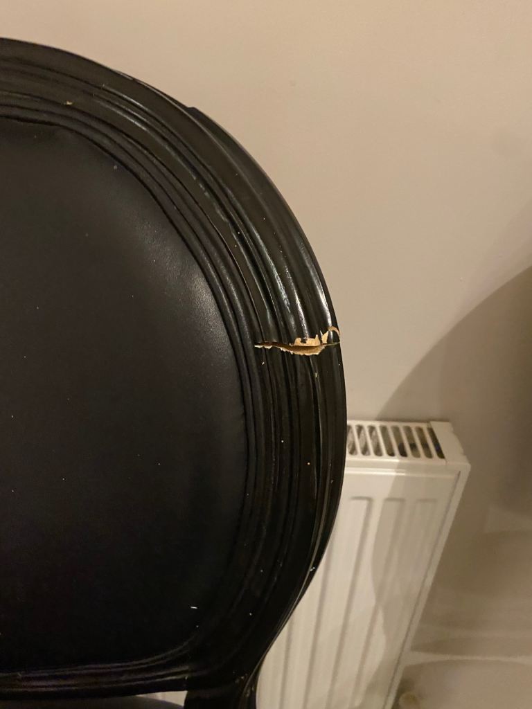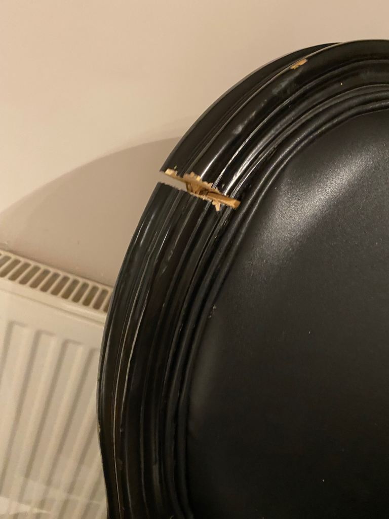 Frame around the back has cracked in areas, as shown but will be fixable with wood glue.
