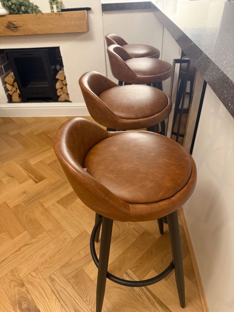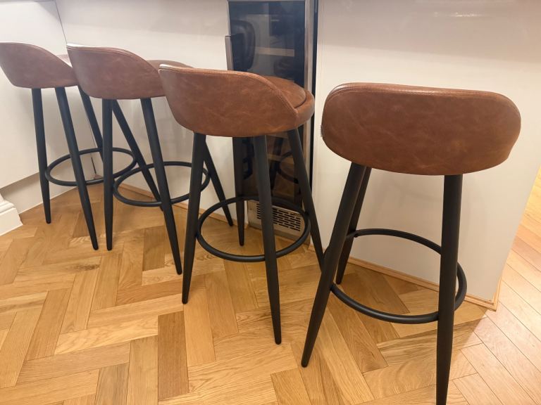 X 4 Bar stools, tan leather effect with black legs. Not used much and a few months old. Excellent condition