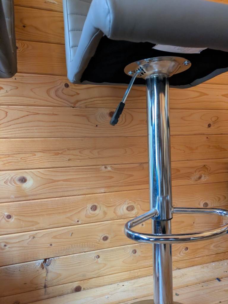 2 X grey breakfast bar stools, with chrome finished legs. Height adjustable with foot rest