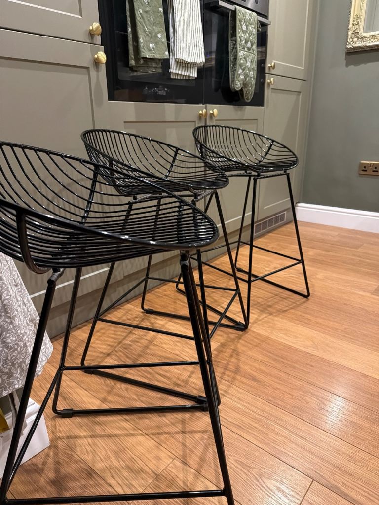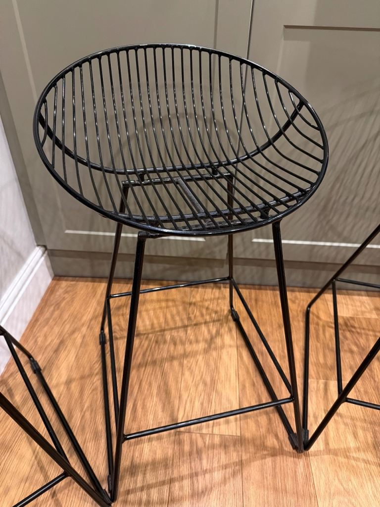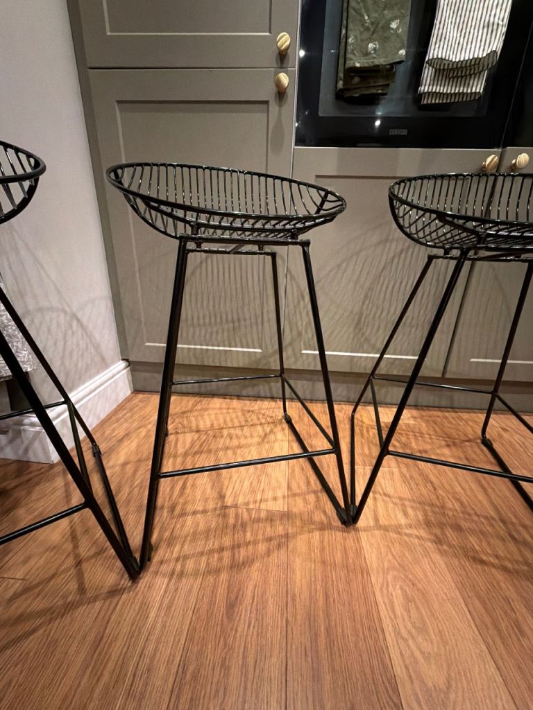 3 black metal breakfast bar stools.