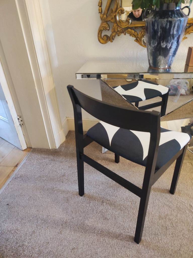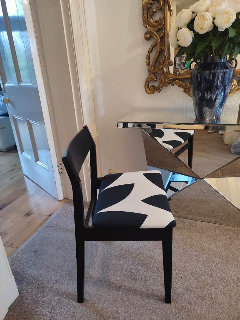 Beautiful black MID-CENTURY occasional chair. Black and white abstract upholstery