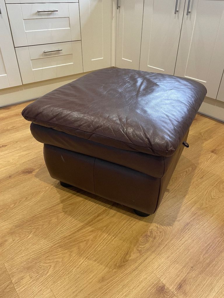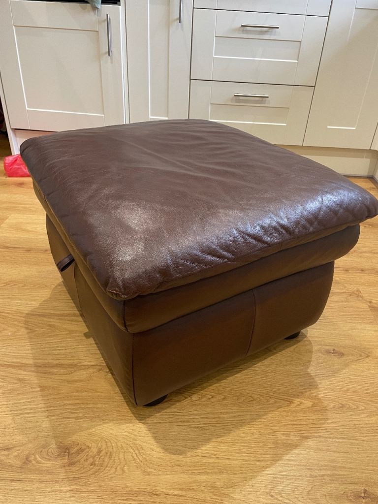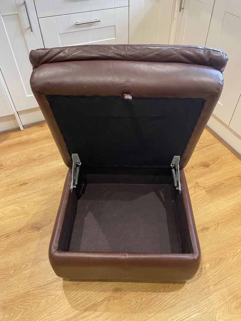 Posting for 9+ monthsBrown Leather footstool with sprung lid storage compartment