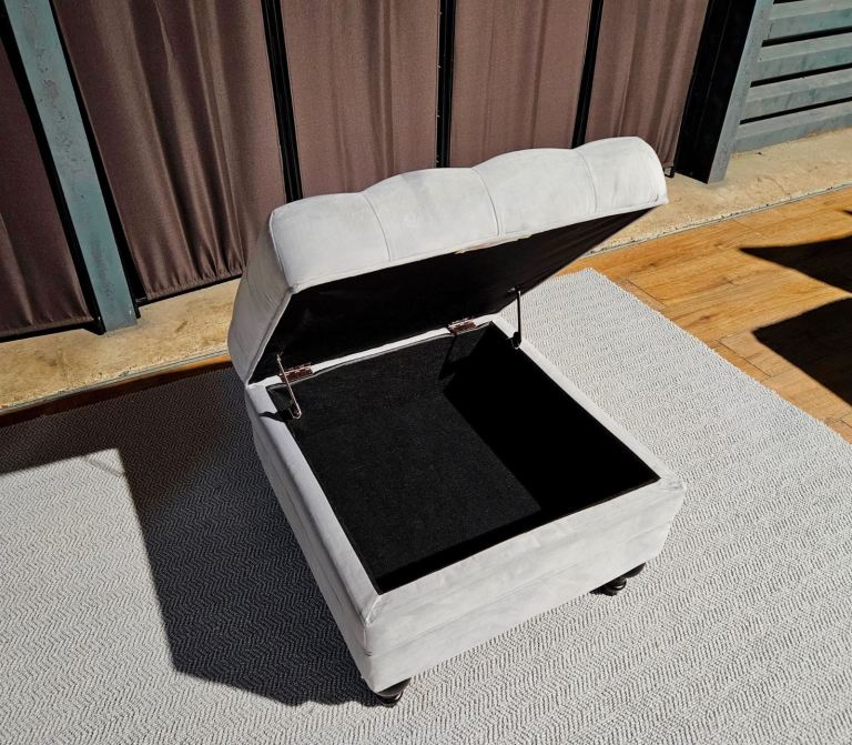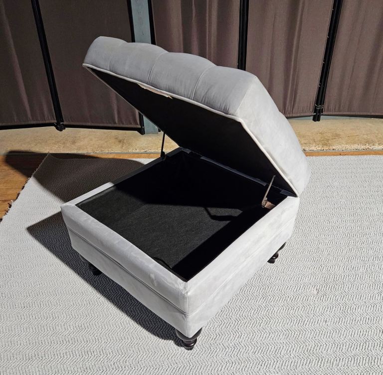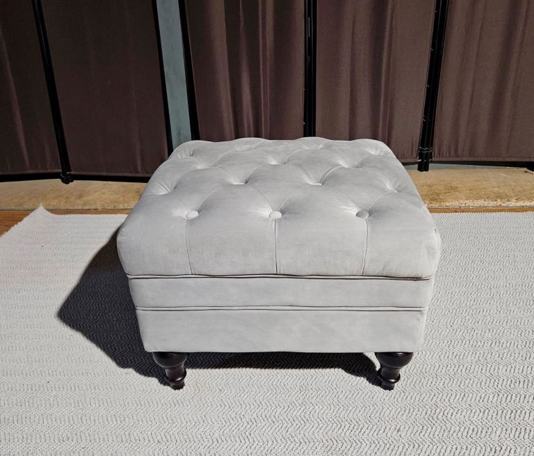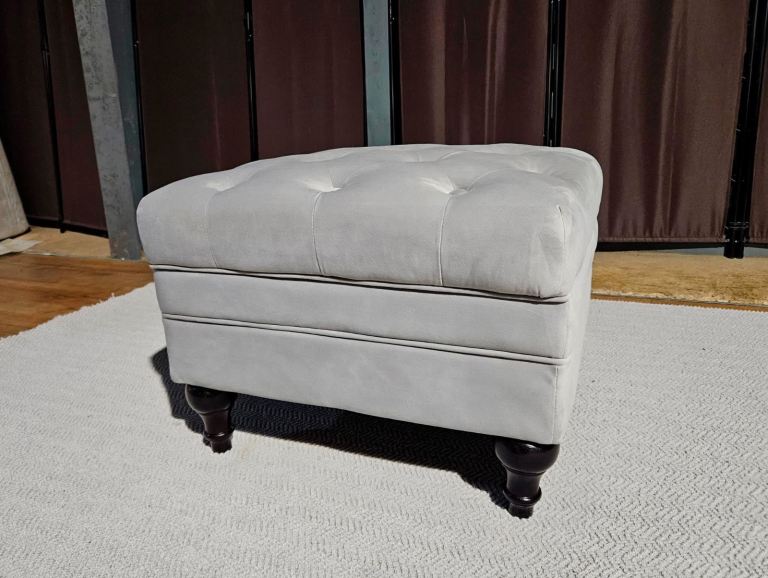 Chesterfield Velvet Storage Footstool - Light Grey.