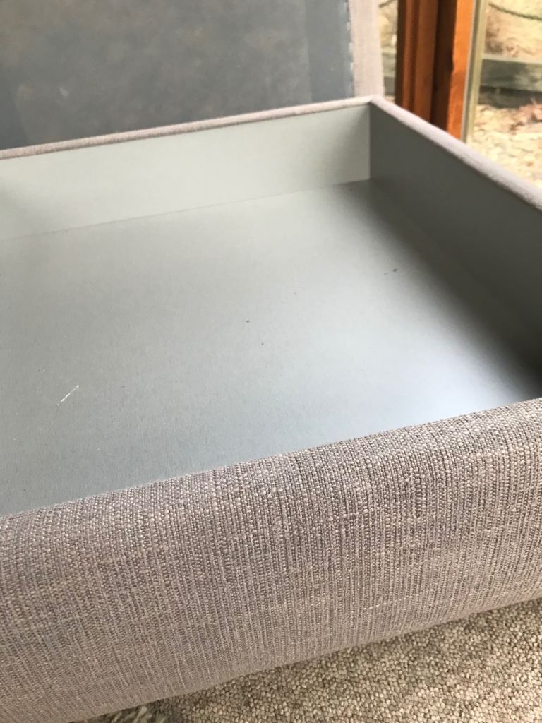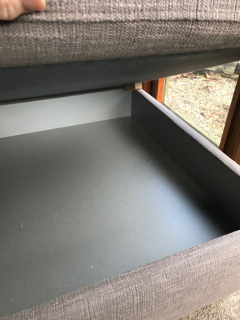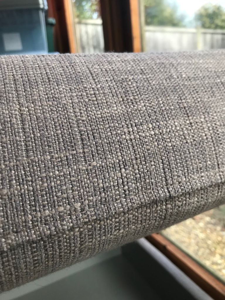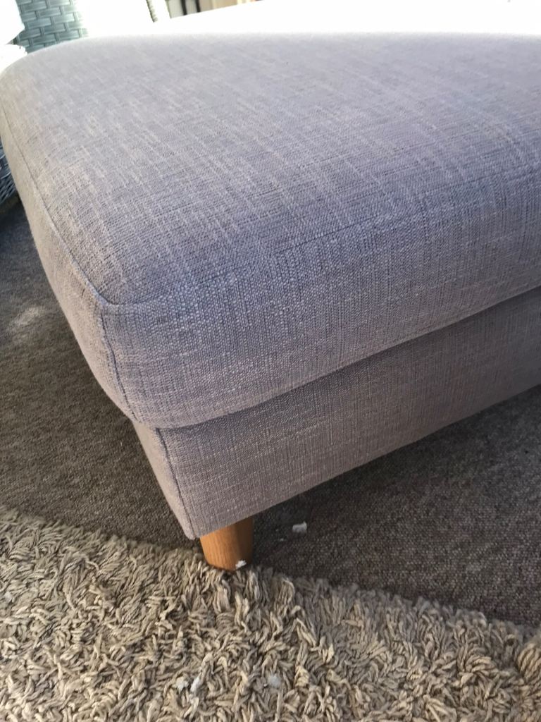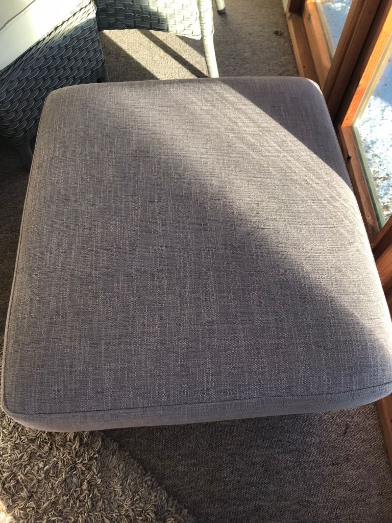 Ercol footstool in warm greyish brown linen weave fabric. In excellent condition and as new as very rarely used . From smoke free and pet free home .