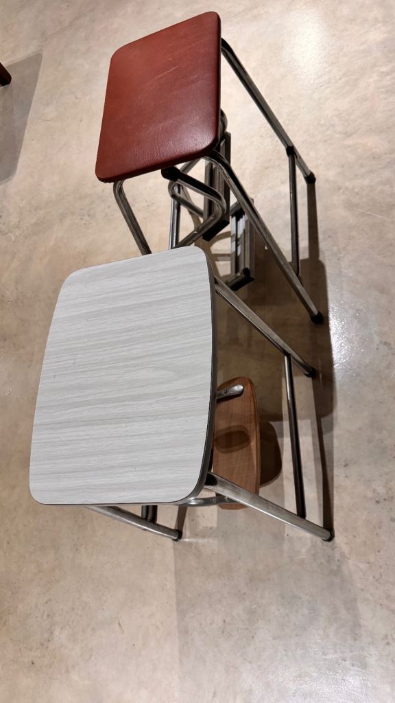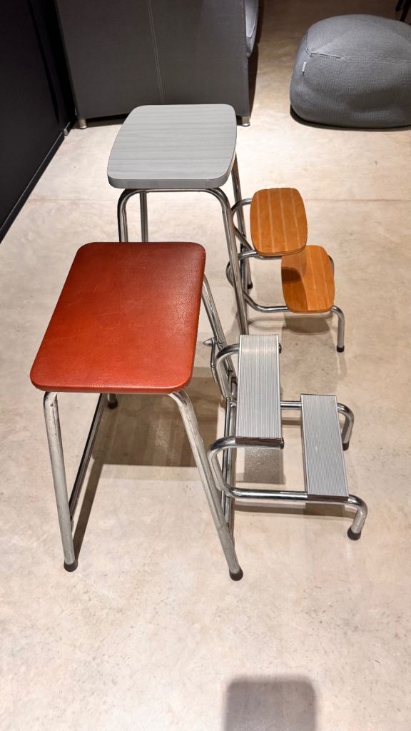 Folding step stool with seat, Step Ladder, Library steps, Kitchen step stool, Sturdy Steel Ladder, Wooden step stool.