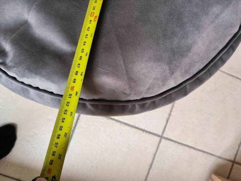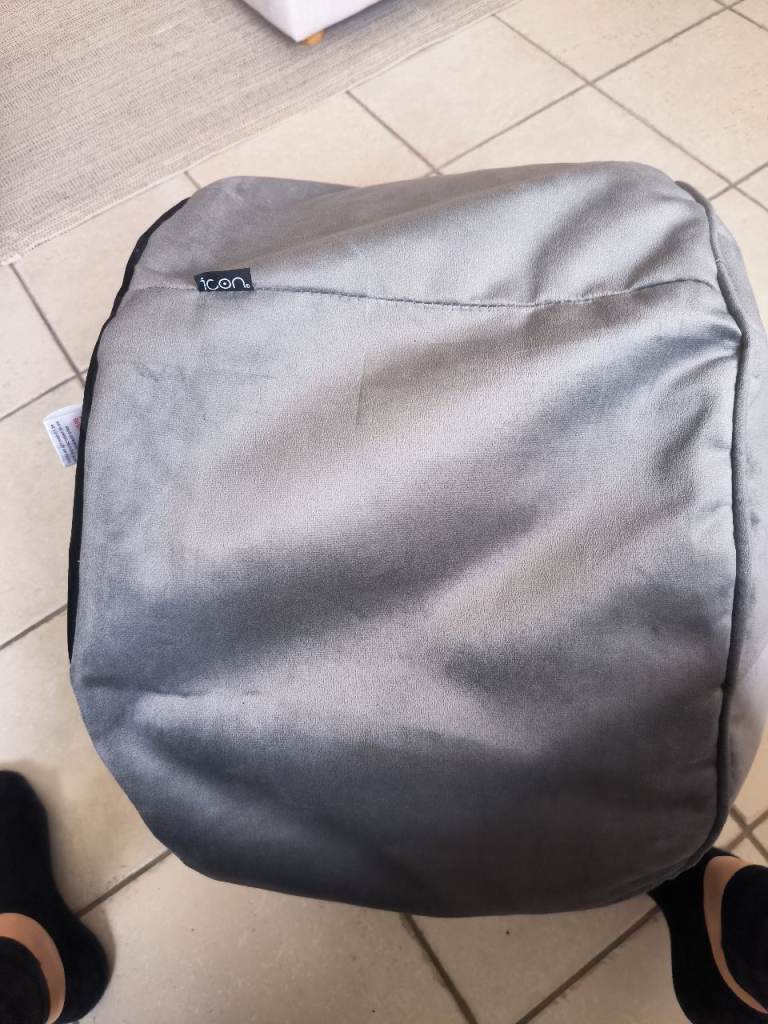 Grey velvet foot stool 50cm round.