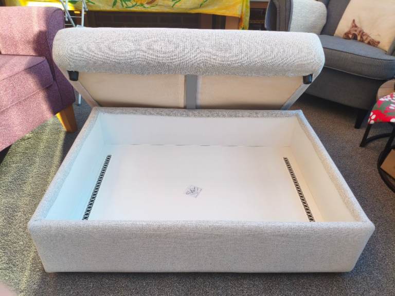 Sturdy and comfortable IKEA footstool with large storage inside.