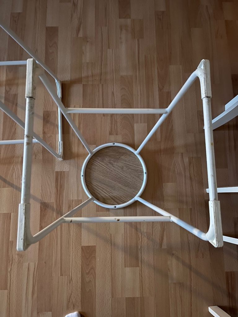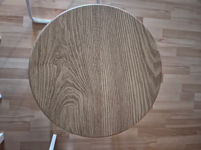 Wooden seat, white metal legs