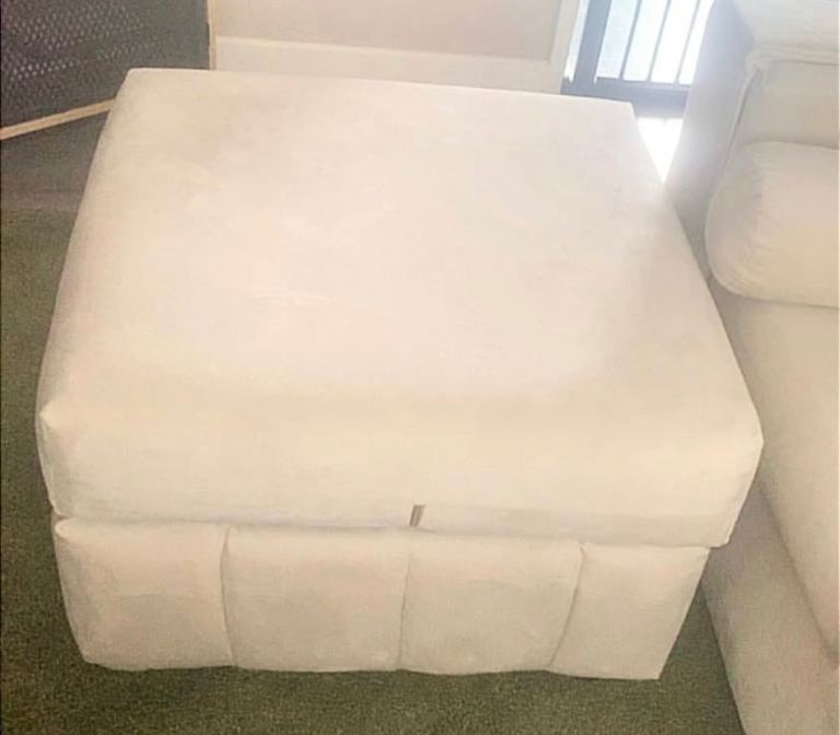 Posting for 3+ yearsLarge Cream suede foot pouffe / foot stool. Nearly new