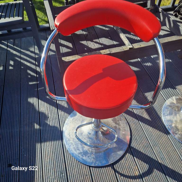 Pair of red bar stools. Been kept in a summerhouse. Functional but tarnished
