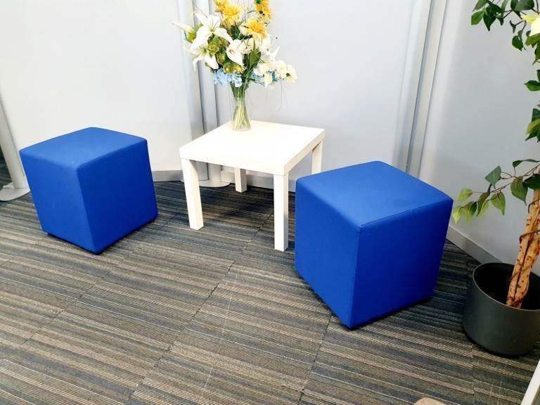 School Nursery home lounge play area pouffe stool seating soft Blue Cube Square Seating Stool