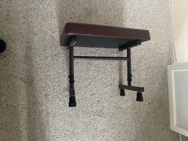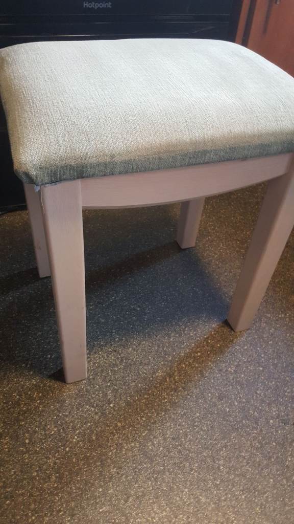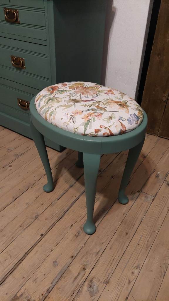 Here is a dressing table stool or a foot stool it's is a strong stool .. and made in maple wood with a green covered top . Fire saftey tag on