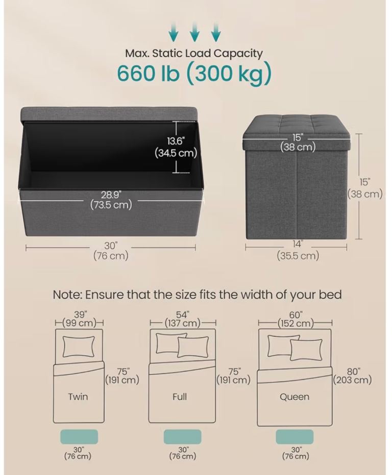 Storage Ottoman Bench, 76 cm Folding Foot Rest Stool