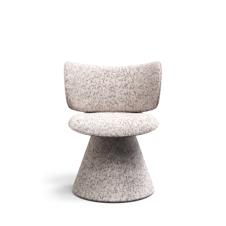 Introducing The Aris Chair, where the boundary between seat and base is dissolved into a single, flowing silhouette. This is not a chair assembled from parts; it is a modern sculpture, born from a singular vision of comfort and form. Designed as a monolithic piece, its wide oval seat, supportive backrest, and stable conical base are all one continuous expression—upholstered in a uniquely textured fabric for a truly distinctive presence.