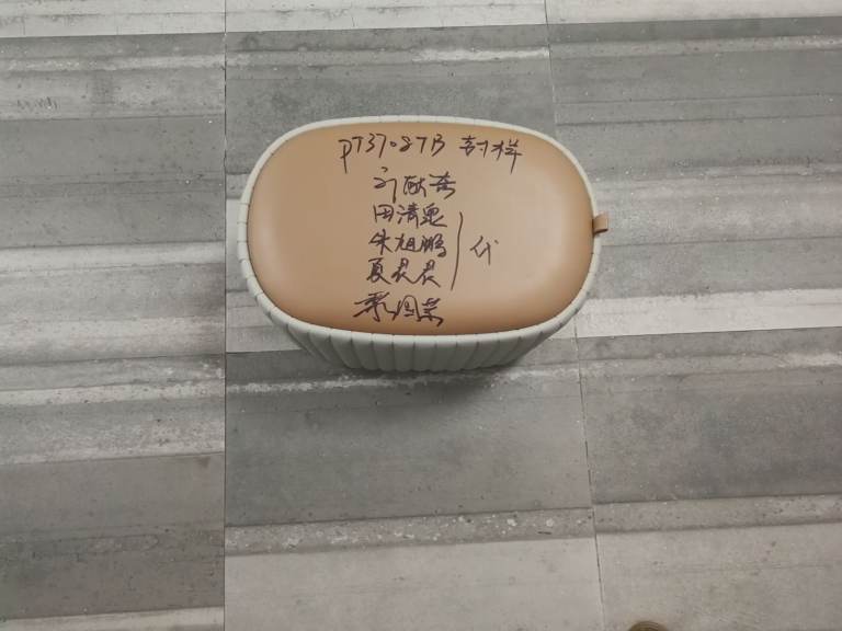 Exterior: Textured Cream Fabric with Smooth Tan Fabric Top