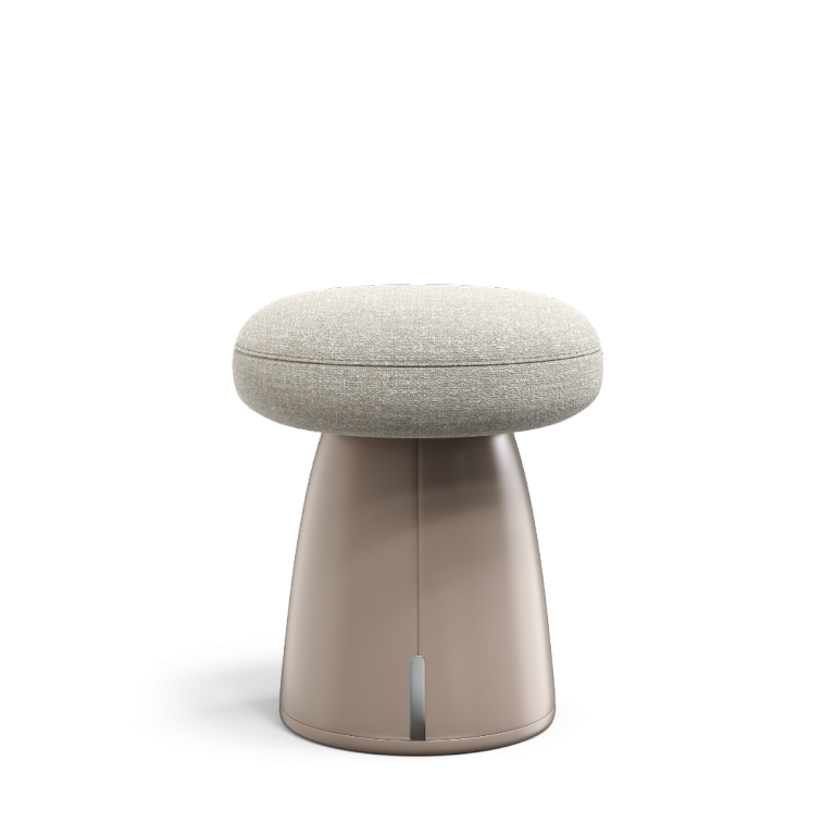 The Textured Rim: Encircling the circular seat, a subtle texture in the woven or patterned fabric catches the light—a delicate detail that adds tactile interest and visual depth without distracting from the clean lines.