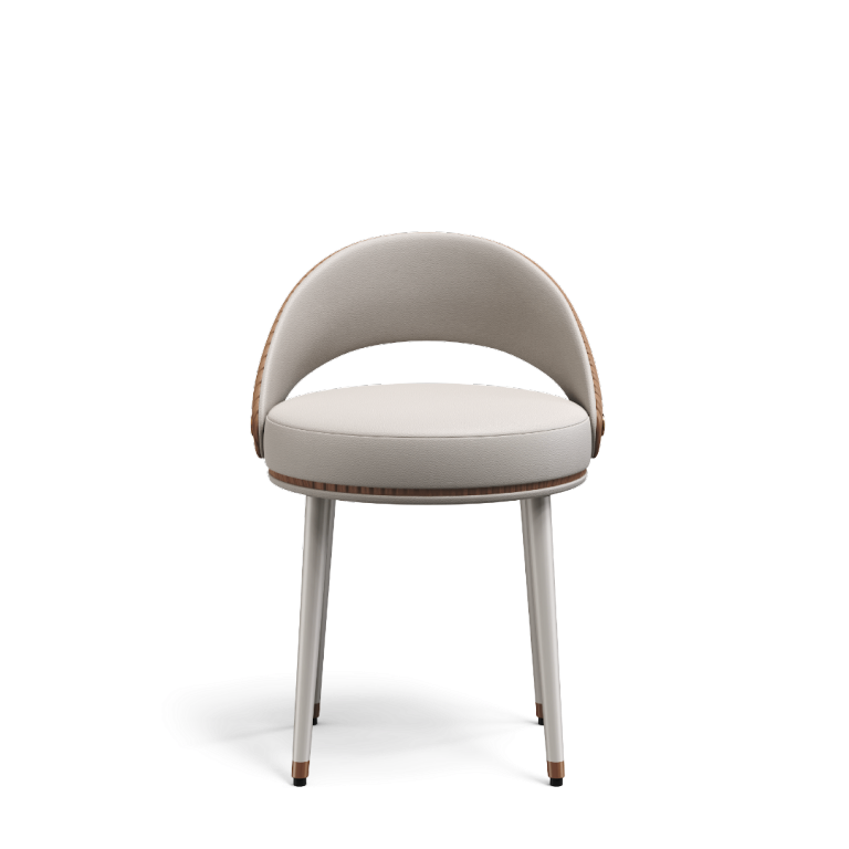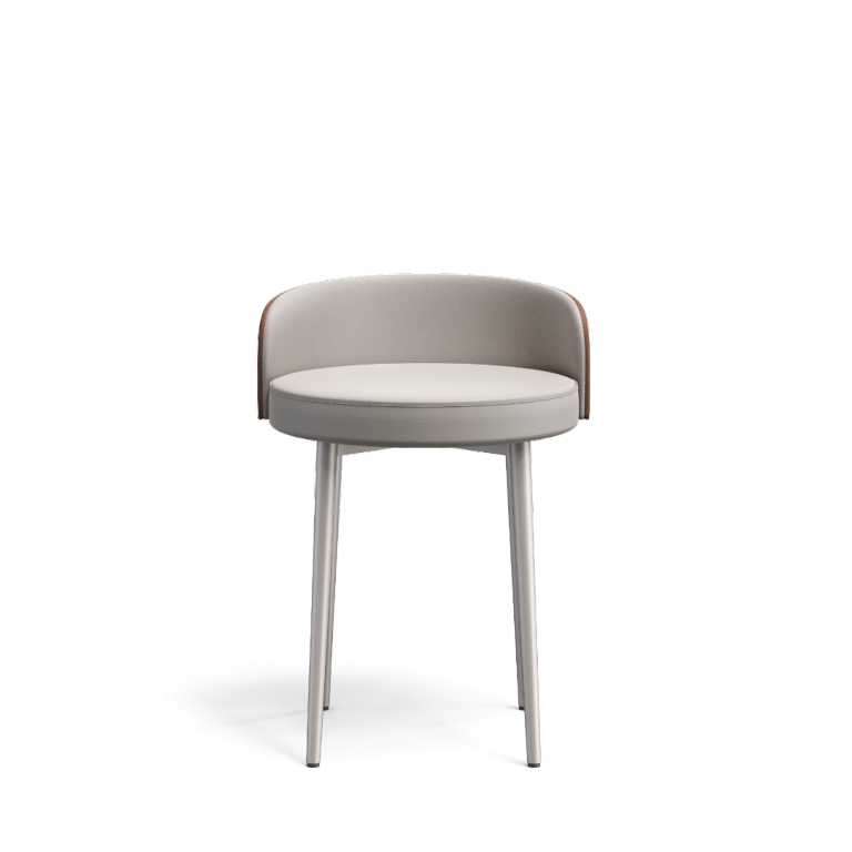 The Gentle Curve: At its heart, a gracefully curved backrest in soft, light off-white or cream rises from a circular seat. The seamless integration of backrest and seat speaks to thoughtful craftsmanship, its gentle arc offering subtle support without overwhelming the minimalist form.