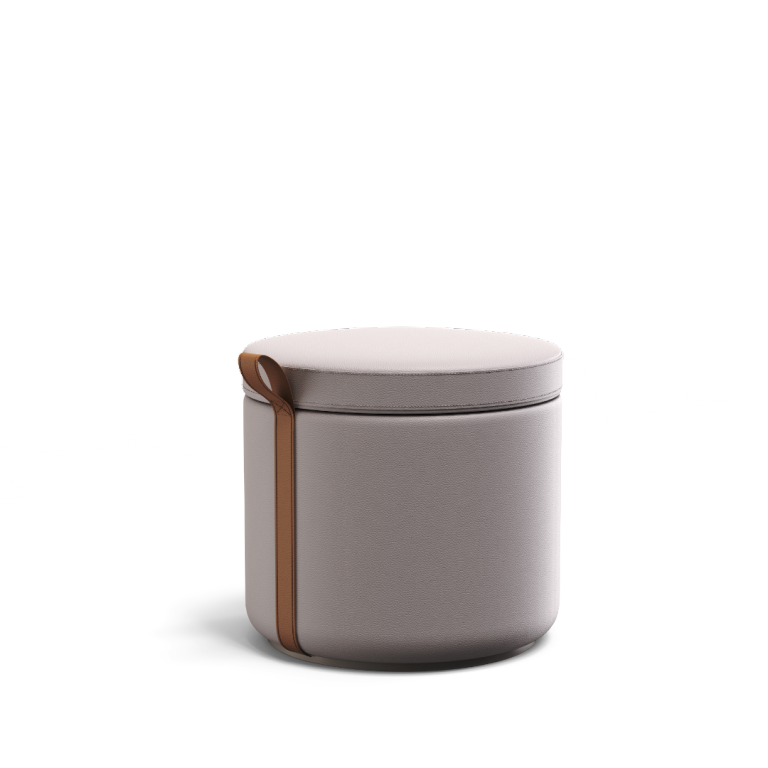 The Lydian Ottoman is the smart, serene answer to modern living. It delivers impeccable style, hidden organization, and artisanal detail in one perfectly formed cylinder—elevating your space while simplifying your life.