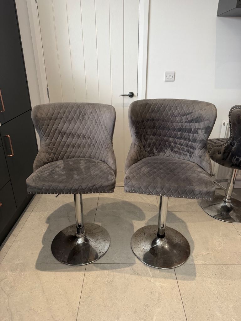 Posting for under a monthValente Grey Velvet Bar Stools - Pair, Fair Condition