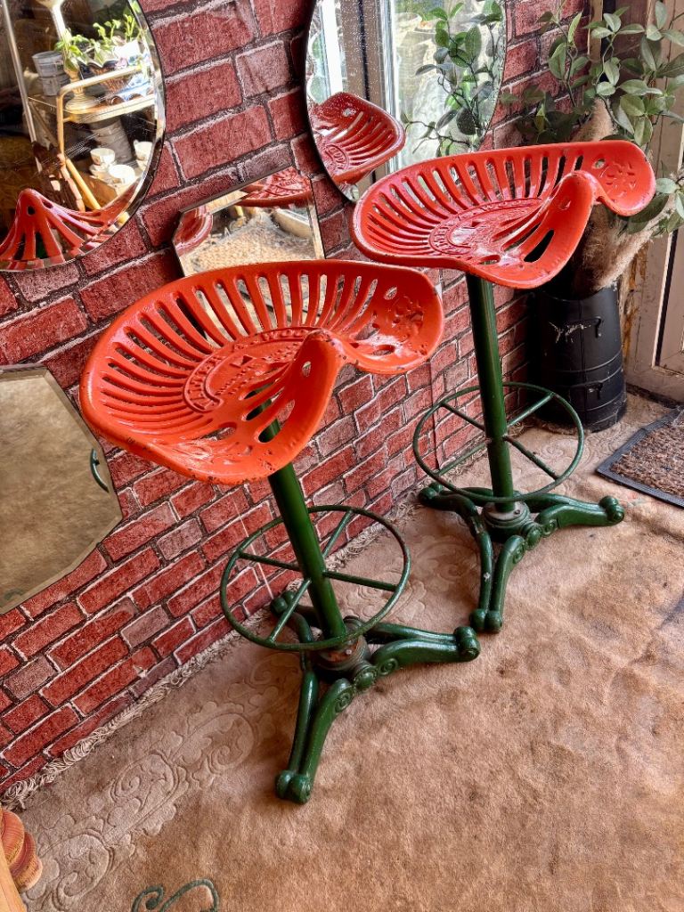 Vintage iron,metal Walter A Wood Tractor seat bar stools* 2 available